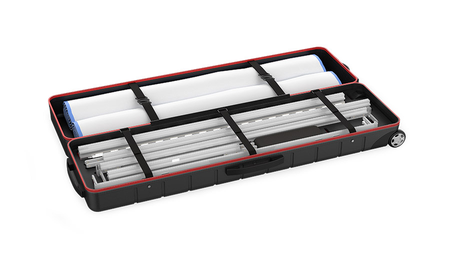 Für den bequemen Transport und die Lagerung wird der BIG LEDUP® DOOR kompakt in 2 ABS-Transportkoffern mit nur 120cm, max. 40cm Breite und max. 31cm Höhe verpackt und lässt sich so problemlos in jedem PKW oder, in Verbindung mit anderen Systemen, auf einer kostengünstigen Europalette transportieren.