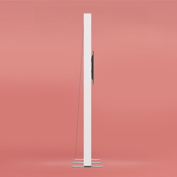 Nehmen Sie einfach die einzelnen Komponenten aus dem praktischen ABS-Koffer, montieren Sie sie (ohne Werkzeuge), schrauben Sie die Füße fest – und schon ist das Display einsatzbereit! Digitaldrucke mit angenähten Silikonlippen lassen sich leicht am System anbringen, sind benutzerfreundlich im Handling und können jederzeit selbstständig ausgetauscht werden.