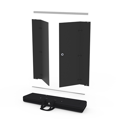 Alle Komponenten der Counter Door werden sicher und kompakt in einem Transportkoffer (116 x 42 x 13 cm, 16 kg)) verpackt. Dieser sorgt nicht nur für maximalen Schutz während des Transports, sondern ermöglicht auch eine einfache und platzsparende Lagerung.