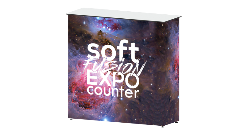 Der Soft Expo Fusion Counter ist eine schnelle und einfache Möglichkeit, eine Theke zu Ihrem Hintergrundsystem hinzuzufügen. Er sieht großartig aus, egal ob er in Ihrem Showroom oder Stand verwendet wird. Er ist die perfekte portable Theke für Messen, Showroom-Anwendungen, Präsentationen, Promotionen und Veranstaltungen.