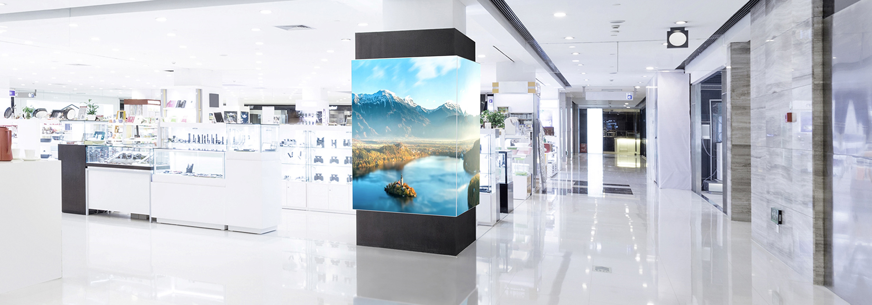 Der Multi Tower Pillar ermöglicht es, Säulen komplett zu verkleiden und schafft somit eine beeindruckende Werbefläche, die durch LED-Hintergrundbeleuchtung noch imposanter wird.