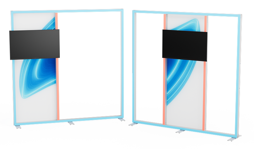 Der LINEUP support pole ermöglicht die Integration der TV Halterung auch in größeren LINEUP Rahmen.