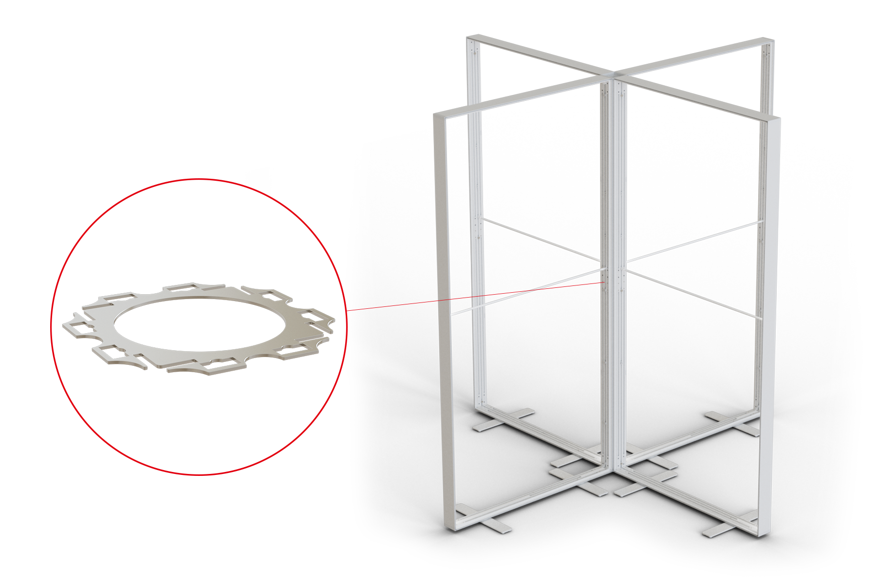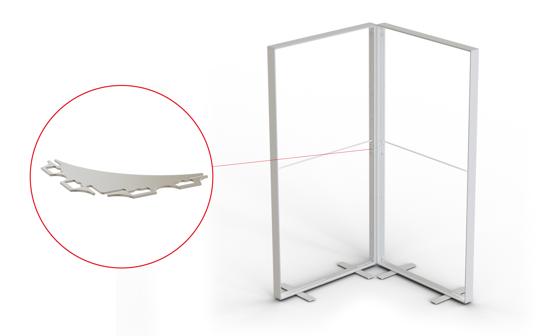 Mit dem 90-Grad-Systemverbinder kann eine stabile Ecklösung geschaffen werden, die das rechte System abdeckt.